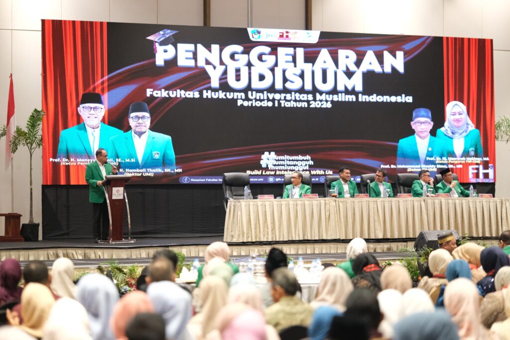 Makassar, umi.ac.id – Fakultas Hukum (FH) Universitas Muslim Indonesia (UMI) menggelar ramah tamah dan yudisium jelang wisuda periode pertama tahun 2026 di Phinisi Ballroom Claro Hotel, Jalan AP Pettarani, Makassar, Rabu (15/4/2026).