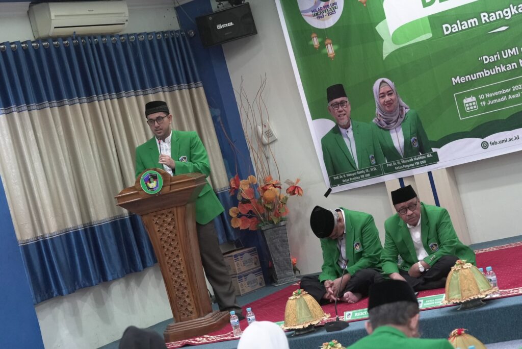 ketua Pembina YW UMI Prof. Dr. H. Mansyur Ramly, SE, M.Si, dalam tausiahnya, meninginkan, FEB UMI mesti terus menjadi lokomotif kemajuan untuk UMI.