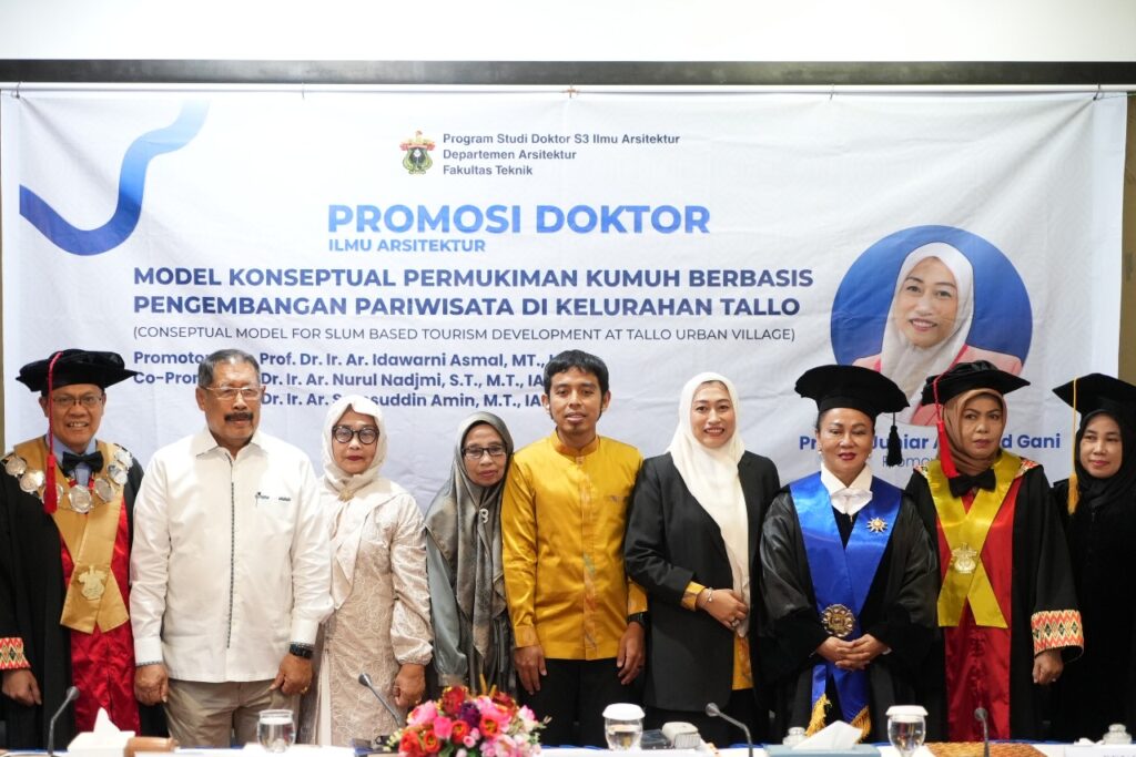 Dalam sidang Promosi Doktor yang dilaksanakan di JK CSA Building Lt. 4 Kampus Teknik Unhas Gowa itu Promovendus mempertahankan disertasinya berjudul “Model Konseptual Permukiman Kumuh Berbasis Pengembangan Pariwisata Di Kelurahan Tallo”.