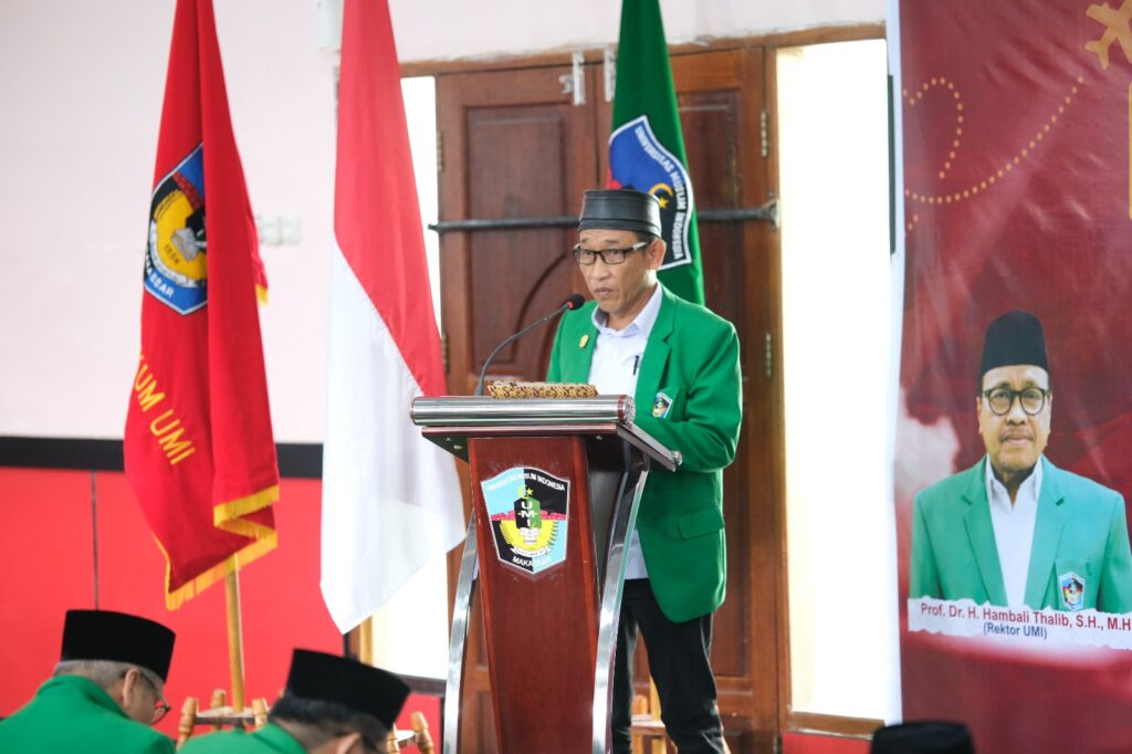Rektor UMI Prof. Dr. H. Hambali Thalib, SH.,MH. dalam sambutannya menyampaikan pesan strategis untuk mempertahankan akreditasi Unggul yang telah dicapai sebanyak tiga kali dan mewujudkan akreditasi internasional.