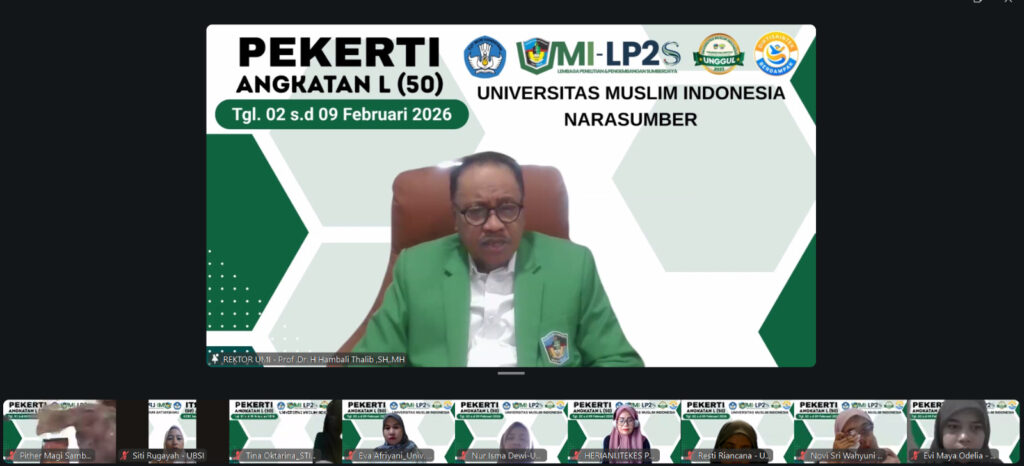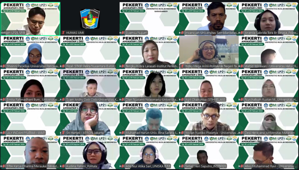 Makassar, umi.ac.id — Lembaga Penelitian dan Pengembangan Sumberdaya (LP2S) Universitas Muslim Indonesia (UMI) kembali menyelenggarakan Pelatihan Peningkatan Keterampilan Dasar Teknik Instruksional (PEKERTI) secara daring melalui Zoom Meeting, yang berlangsung pada tanggal 2 hingga 9 Februari 2026.