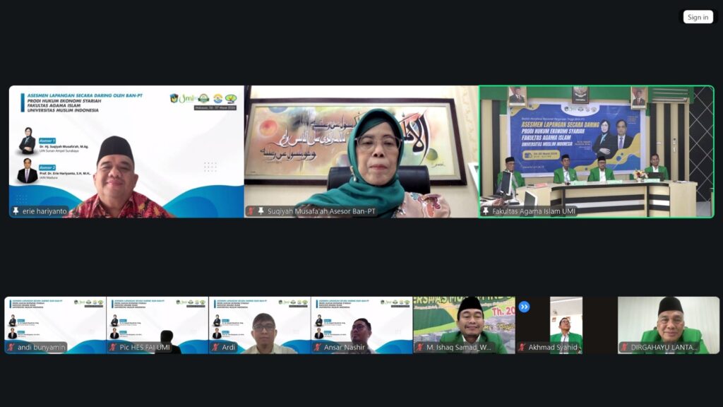 Makassar, umi.ac.id – Program Studi Hukum Ekonomi Syariah (HES) Fakultas Agama Islam (FAI) Universitas Muslim Indonesia (UMI) mengikuti asesmen lapangan dalam rangka re-akreditasi BAN-PT yang dilaksanakan secara daring pada 6–8 Maret 2026. Kegiatan ini menjadi bagian dari upaya berkelanjutan FAI UMI dalam memperkuat tata kelola, kualitas akademik, serta layanan pendidikan berbasis mutu.