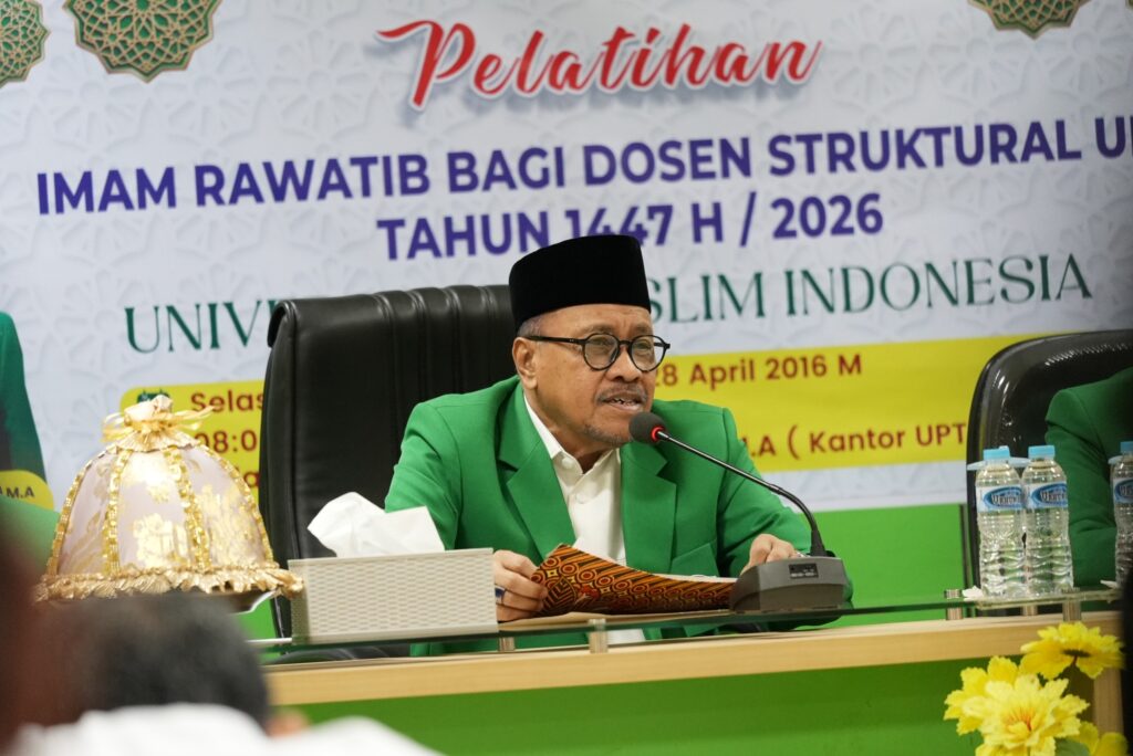 Makassar, umi.ac.id — Universitas Muslim Indonesia (UMI) kembali menegaskan jati dirinya sebagai kampus ilmu dan ibadah melalui penyelenggaraan Pelatihan Imam Rawatib bagi Dosen Struktural yang dilaksanakan oleh Unit Pelaksana Teknis (UPT) Pengembangan Karakter dan Dakwah (PKD) UMI, Selasa, 28 April 2026.