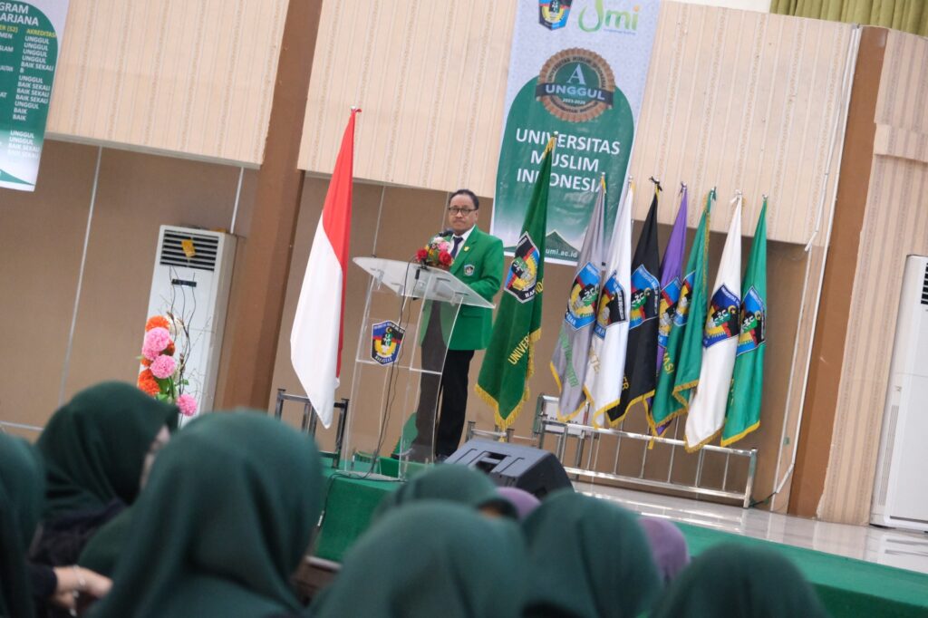 Rektor UMI Prof. Dr. H. Hambali Thalib, SH.,MH. dalam sambutannya mengucapkan selamat datang kepada anandaku sekalian mahasiswa baru Fakultas Kesehatan Masyarakat UMI TA. 2025/2026.