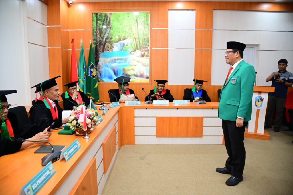 Gelar Doktor (S3) diraih setelah Azhar Arsyad mengikuti sidang promosi doktor yang digelar di Aula Lantai 1 PPS UMI, Jalan Urip Sumohardjo, Makassar, Rabu (25/2/2026). Pada kesempatan tersebut, ia mempertahankan disertasi berjudul “Hakikat Hak Angket Dewan Perwakilan Rakyat Daerah Provinsi dalam Pengawasan Pemerintahan di Wilayah Hukum Sulawesi Selatan.”
