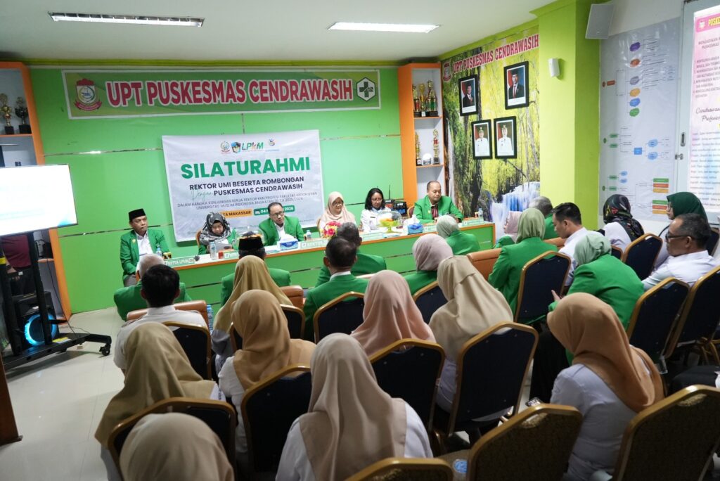 Rombongan pimpinan UMI disambut Kadis Kesehatan Makassar yang diwakili Kabid Pencegahan dan Pengendalian Penyakit (P2) dr. Andi Mariani, M. H.Kes., Kepala Puskesmas Cendrawasih Makassar drg. Cynthia WS Rieuwpassa beserta 12 kepala puskesmas lingkup kota Makassar.