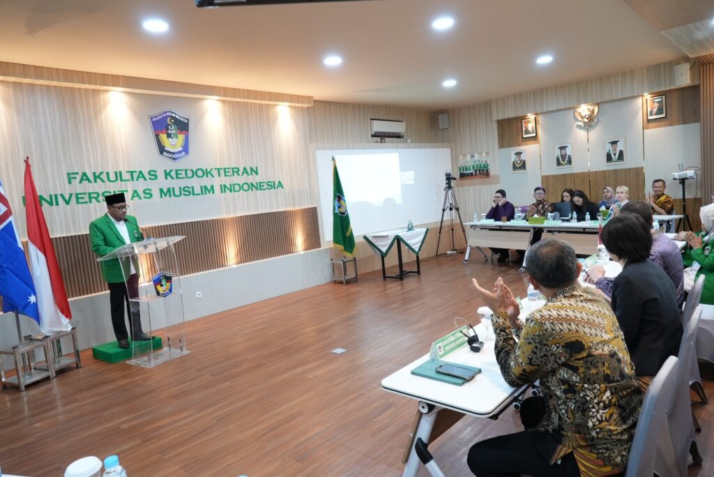 Kegiatan berlangsung secara hybrid dan dipusatkan di auditorium lantai 2 Fakultas Kedokteran UMI, Jalan Urip Sumoharjo, Makassar, Selasa (4/11/2025).
