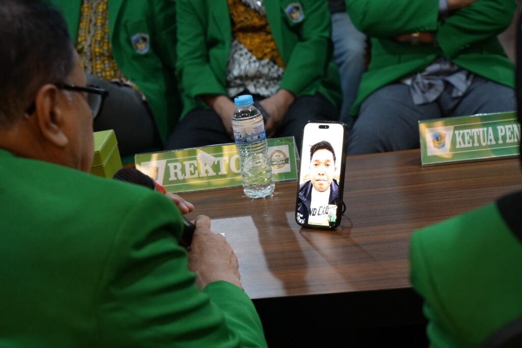 “Hari ini masih terjadi banjir lagi, Prof,” ujarnya kepada Prof. Hambali melalui video call dari sambungan Handphone Wakil Rektor II UMI Prof. Dr. Zakir Sabara.