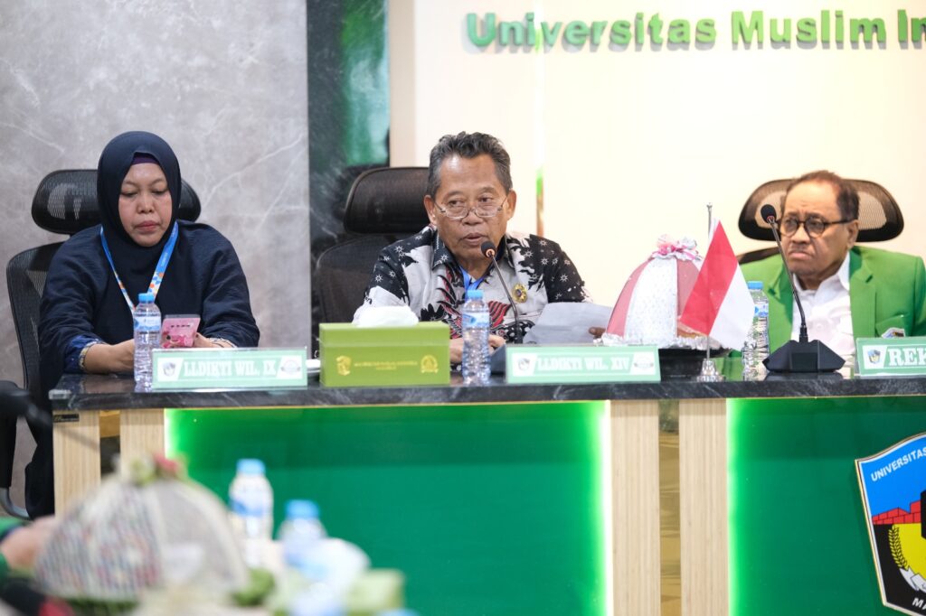 Rombongan dipimpin perwakilan Kepala LLDIKTI Wilayah XIV, yang juga Rektor Universitas Pendidikan Muhammadiyah Sorong, Dr. Rustamadji, M.Si., dan disambut langsung oleh Ketua Pembina Yayasan Wakaf UMI Prof. Dr. H. Mansyur Ramly, S.E., M.Si., Ketua Pengurus YW-UMI Prof. Dr. Hj. Masrurah Mokhtar, M.A., serta Rektor UMI Prof. Dr. H. Hambali Thalib, S.H., M.H., didampingi jajaran Senat Akademik UMI.
