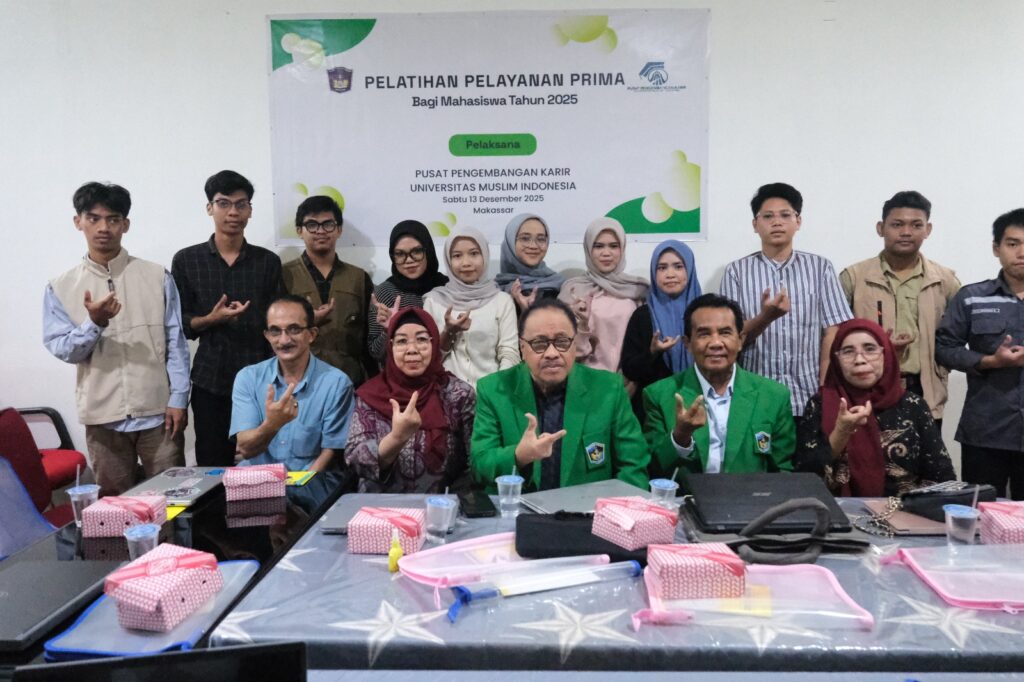 Makassar, umi.ac.id – Unit Pelaksana Tugas (UPT) Pusat Pengembangan Karir (P2K) Universitas Muslim Indonesia (UMI) menggelar Pelatihan Pelayanan Prima Bagi Mahasiswa di Aula Lantai 1 UPT. PPK UMI Masjid Umar bin Khattab Kampus 2 UMI pada hari Sabtu (13/12/2025).