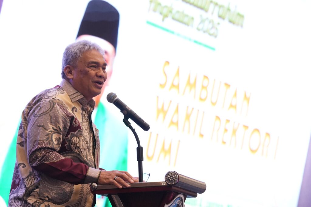Sementara itu, Rektor UMI yang diwakili oleh Wakil Rektor I Prof. Dr. Ir. Dirgahayu A Lantara, MT, IPU, ASEAN Eng, ada tiga kata yang merupakan poin penting dalam kegiatan kali ini yakni Silaturahmi, inagurasi, dan kata Bina Akrab.