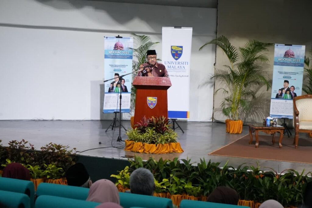 Timbalan Naib Canselor (Penyelidikan & Inovasi) UM, Prof. Ir. Dr. Kaharudin Dimyati, dalam sambutannya menegaskan relevansi tema WOCIHA 2025 dengan konteks sosial-politik Asia Tenggara masa kini.